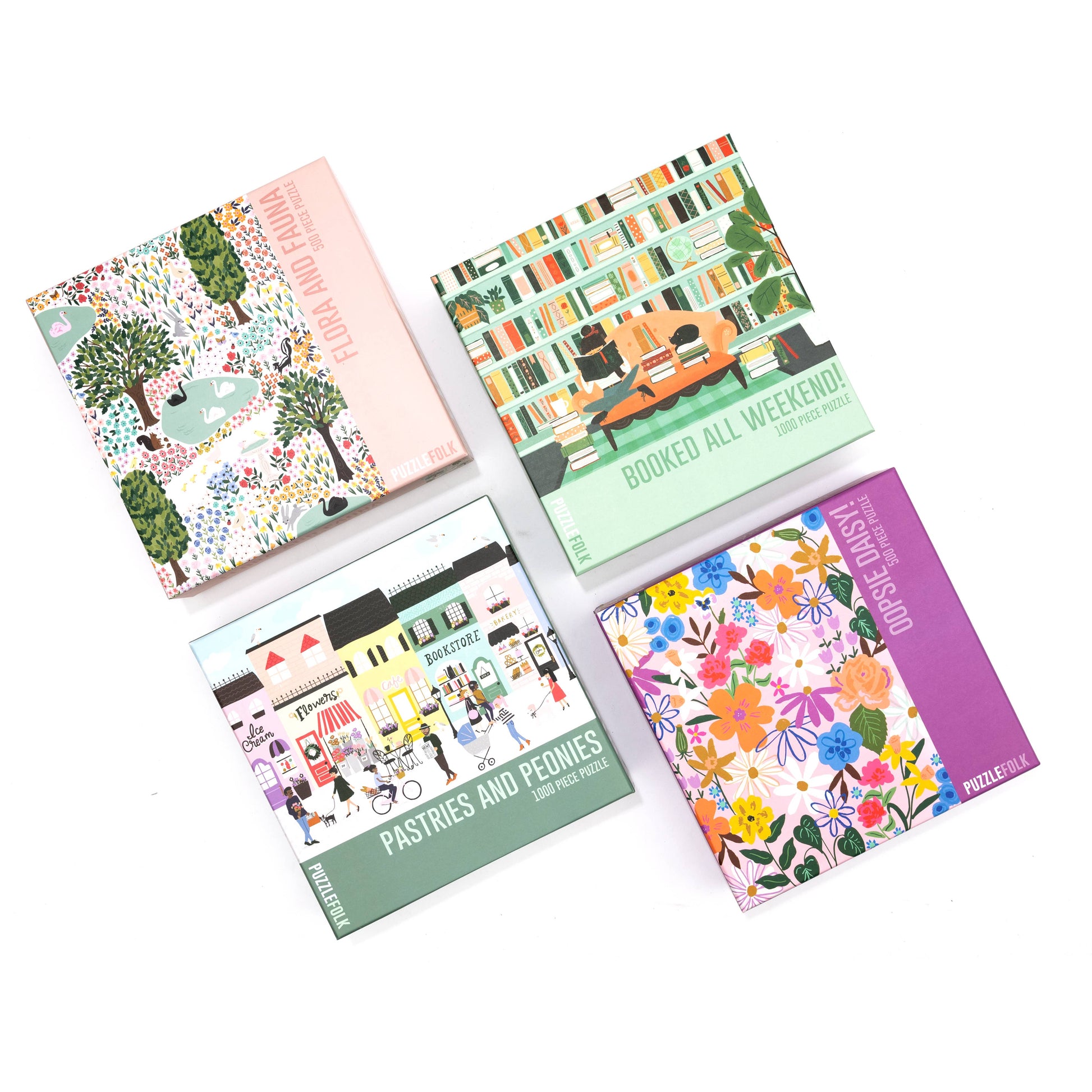 A library themed puzzle for all of our book lovers out there! This design is full of the cutest color combinations & fun elements scattered throughout the piece! If you are looking for something to pair with a good book over the weekend, this is it!