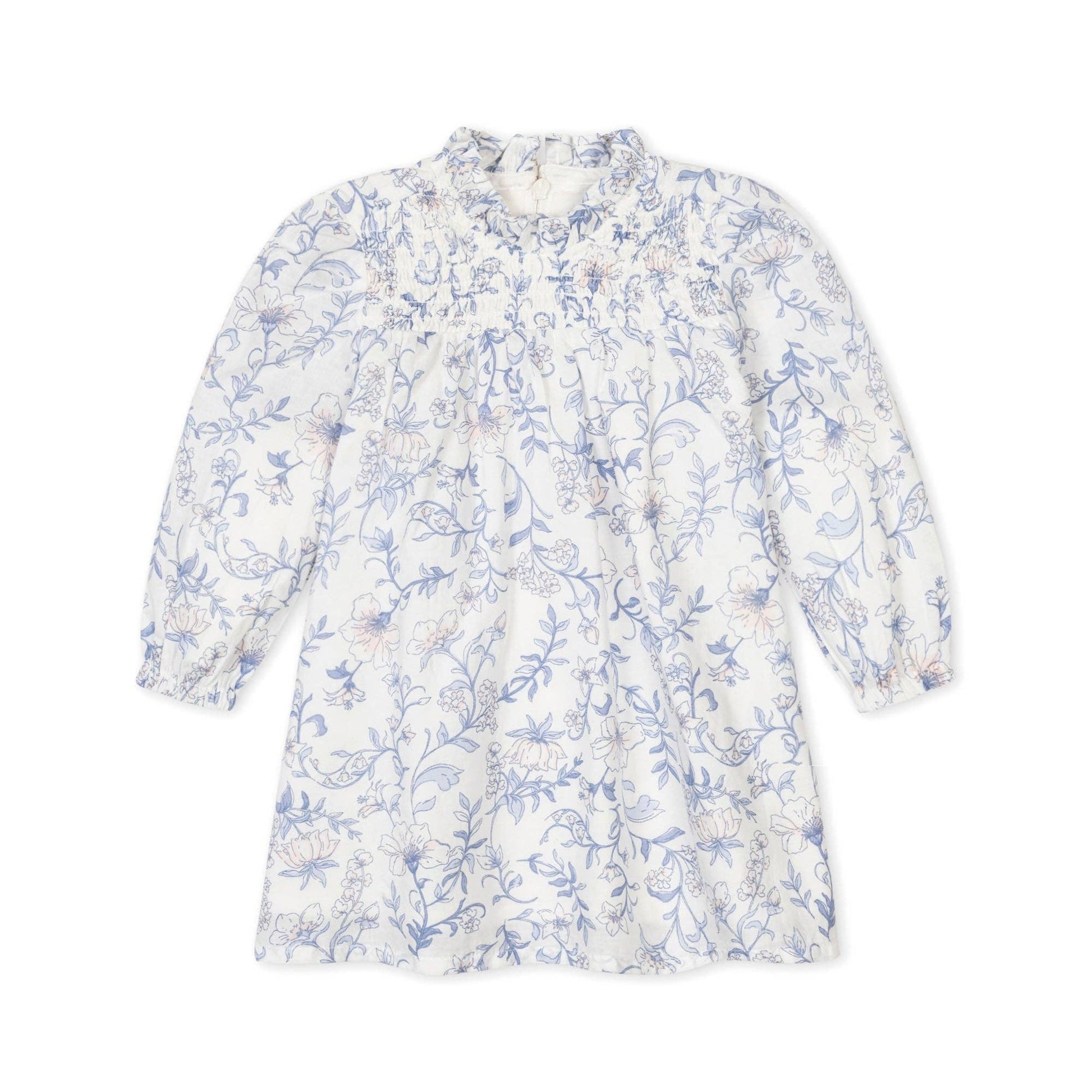A beautiful silhouette in soft organic cotton brings charm and sophistication to this classic ruffle neck empire waist dress. Features a pretty ruffle neck, smocked yoke, gathered cuffs, and a zipper closure down the center back for easy dressing. Fully lined in organic cotton. A stunning piece for the fall and winter seasons.