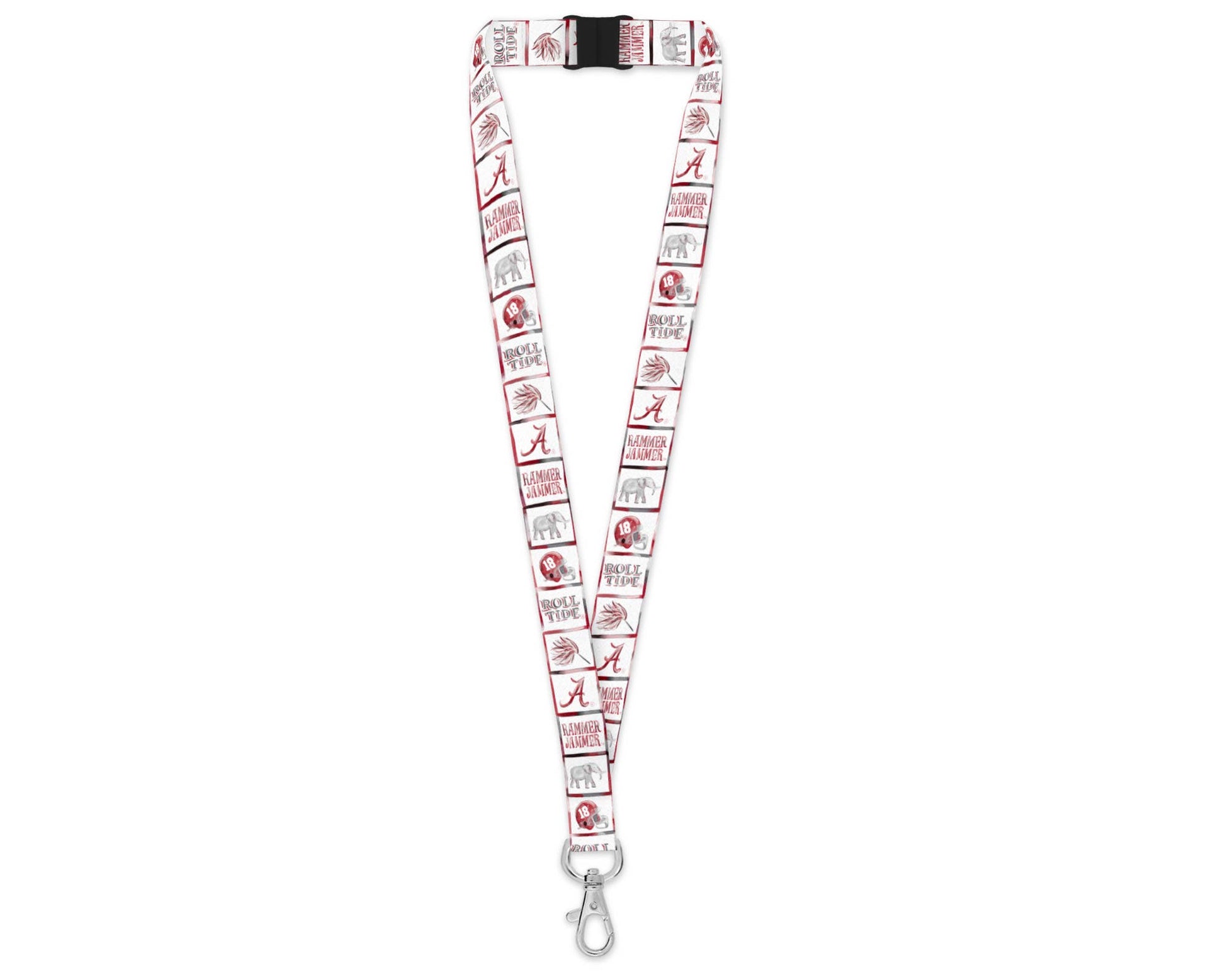 Our Alabama lanyards are the perfect way to carry a little Crimson Tide pride wherever you go! Designed with hand-illustrated icons and phrases like “Roll Tide” and “Rammer Jammer,” this lanyard is both functional and full of school spirit. It features a breakaway clasp and sturdy metal clip, making it ideal for holding keys, IDs, or gameday credentials.